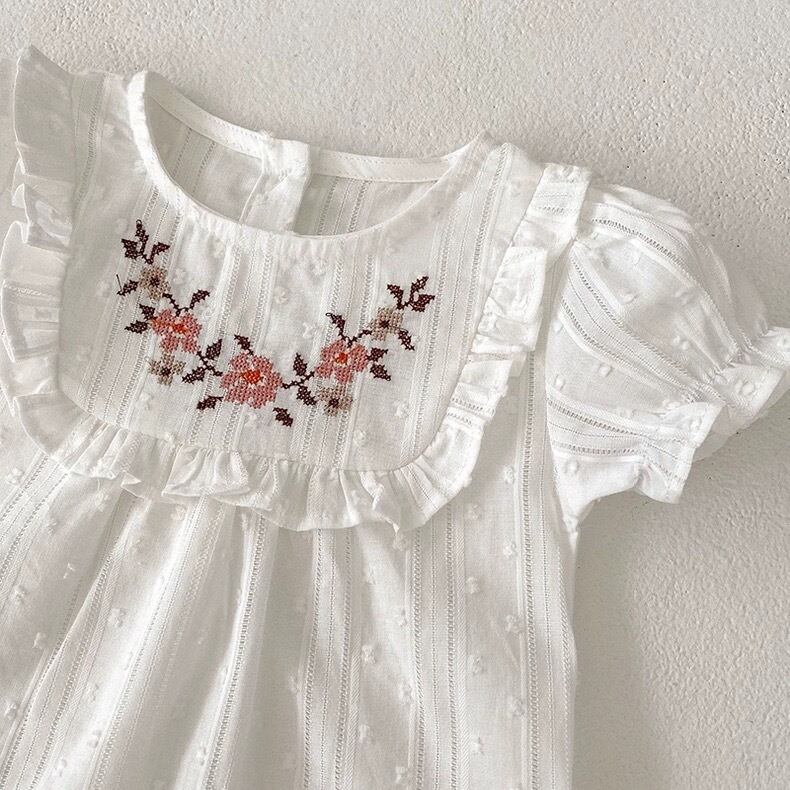 女の子/トップス/夏/白/WHITE/Tシャツ/おはな/刺繍