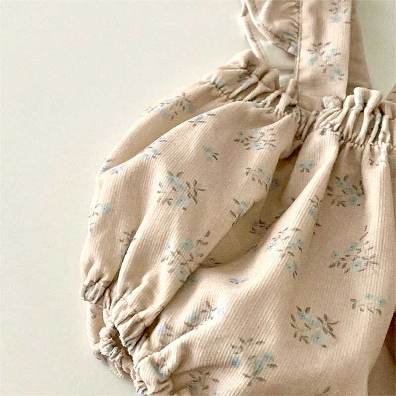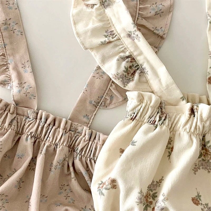 赤ちゃん/サロペット/ズボン/おはな/フリル/白/WHITE/茶/BRAUN